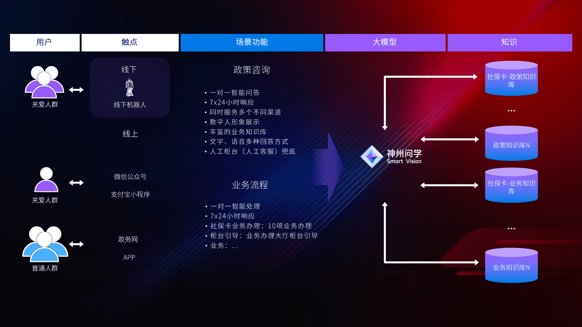 • 线上线下全覆盖:线上提供微信公众号、、、、支付宝小程序、、、政务网、、、app多种渠道,,,与线下机器人形成完整服务体系。。。。